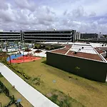 El Novíssimo Flat Beach Class Solare - Muro Alto -Soft Open Pôrto das Galinhas está situado a unos 10 minutos en coche de los Tecmares Maricultura de Camarones, y a 3 km de la Playa de Cupe. Los huéspedes tienen acceso a Wi-Fi.
